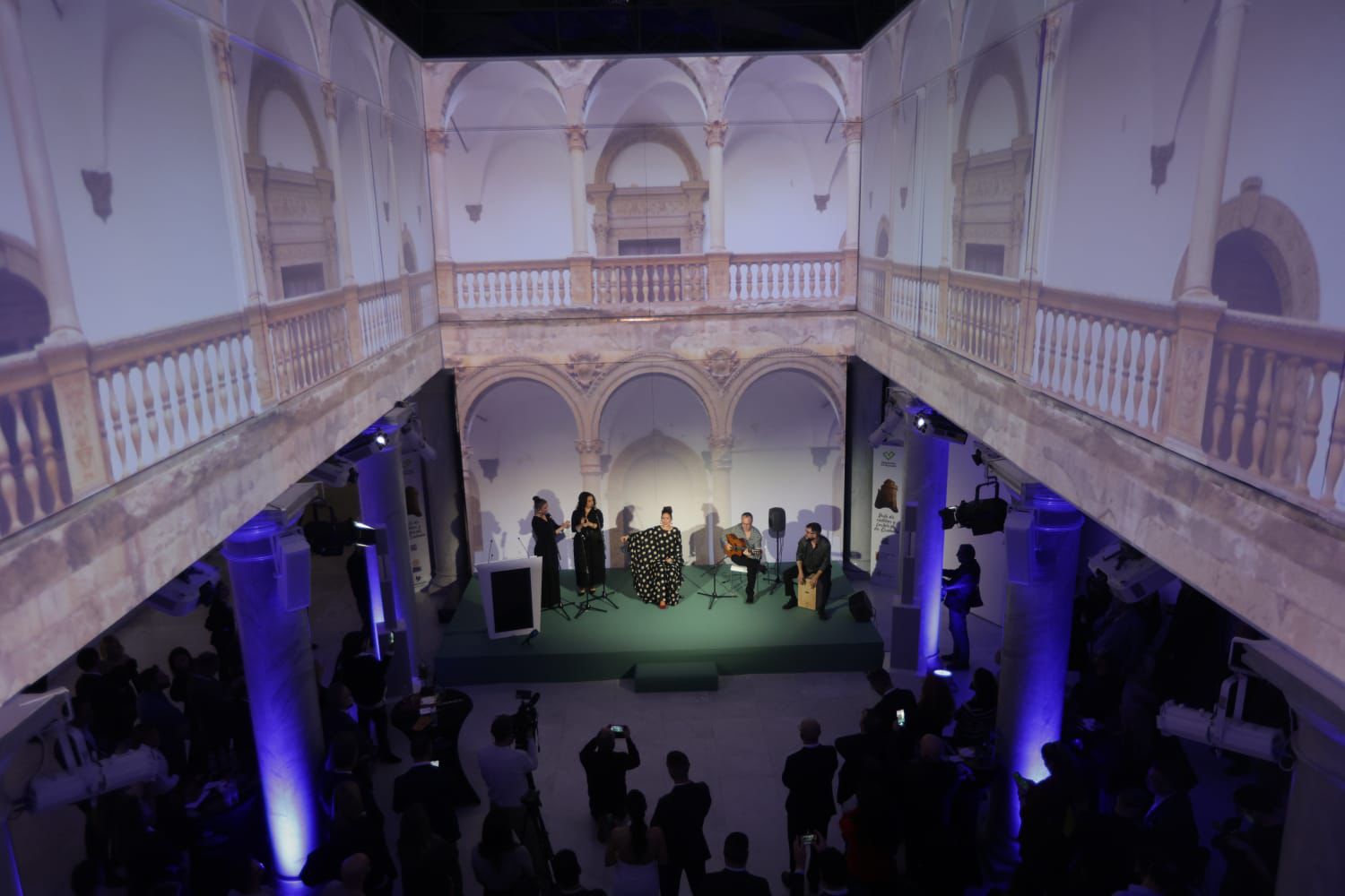 La presentación de la Ruta de los Castillos y Fortalezas de Granada ha sido la culminación de una acción de gobierno orientada a poner en valor el patrimonio defensivo de la provincia y ha contado con una experiencia audiovisual inmersiva de cinco minutos que, utilizando el fuego como hilo conductor simbólico, ha recorrido la historia defensiva del territorio despertando la memoria de la piedra. El acto ha incluido también la actuación de la cantaora Marina Heredia, bajo la proyección del patio de armas del Castillo de La Calahorra.