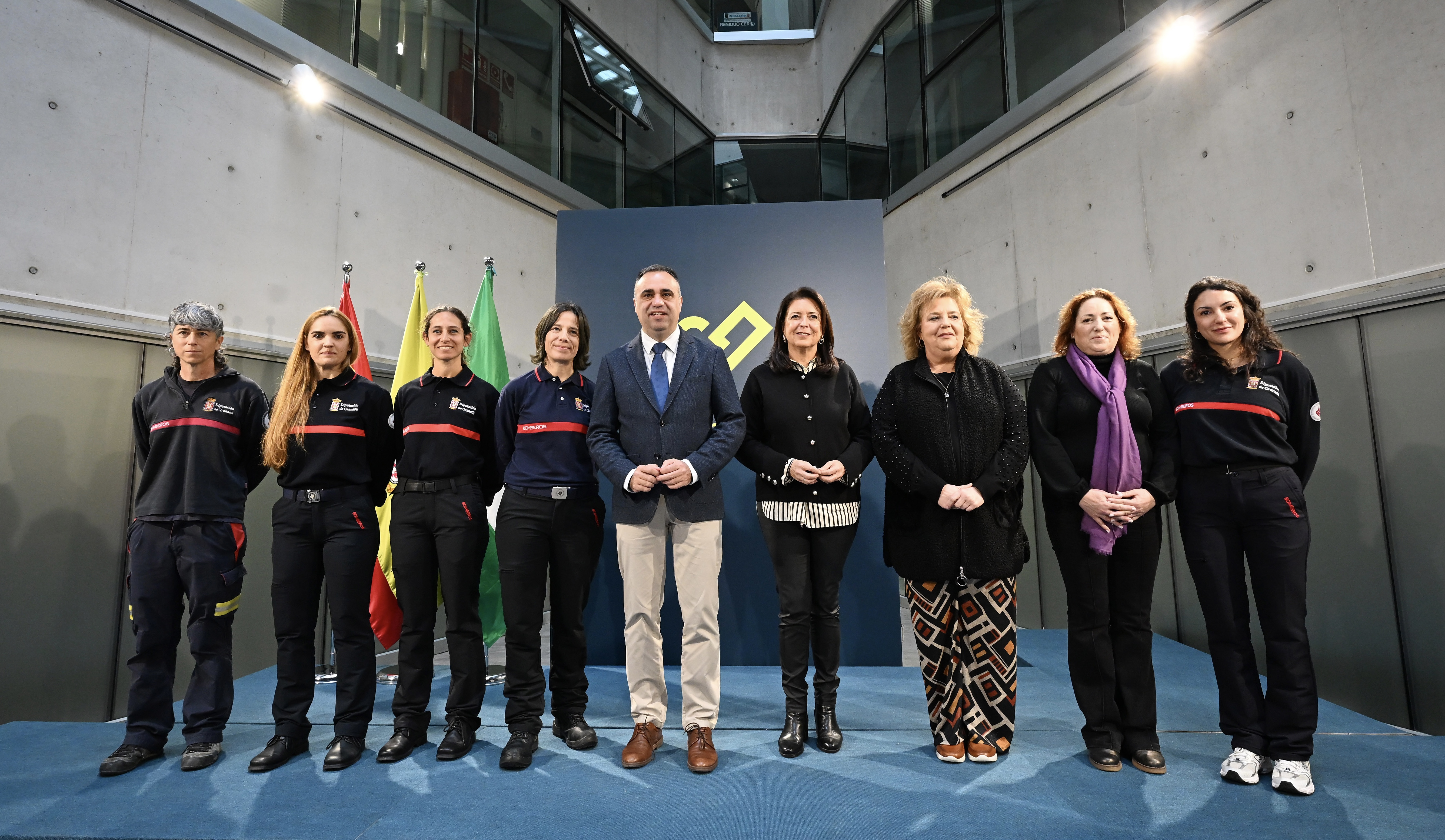 El presidente de la Diputación de Granada, Francis Rodríguez, ha presidido el acto de lectura del manifiesto del Día Internacional de las Mujeres, que ha sido leído por Rocío Sánchez, Inés Mesas y Mónica Vera, bomberas de la Diputación.