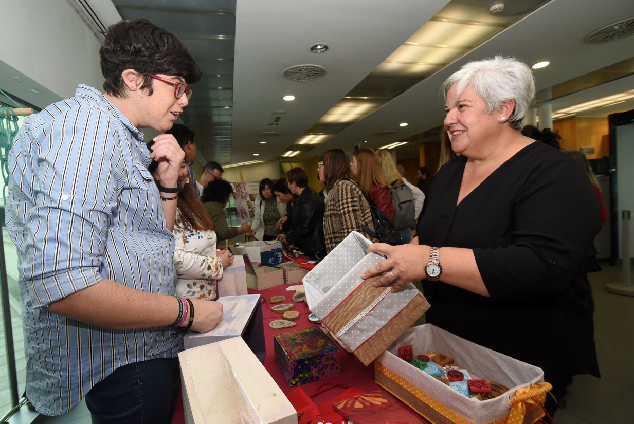 La diputada de Centros Sociales, Adela Álvarez, ha visitado hoy el Mercadillo Solidario que organiza el Centro Ocupacional para personas con discapacidad Reina Sofía, y que vende artículos elaborados por sus usuarios. El mercadillo se ha instalado en la sede central de Diputación.