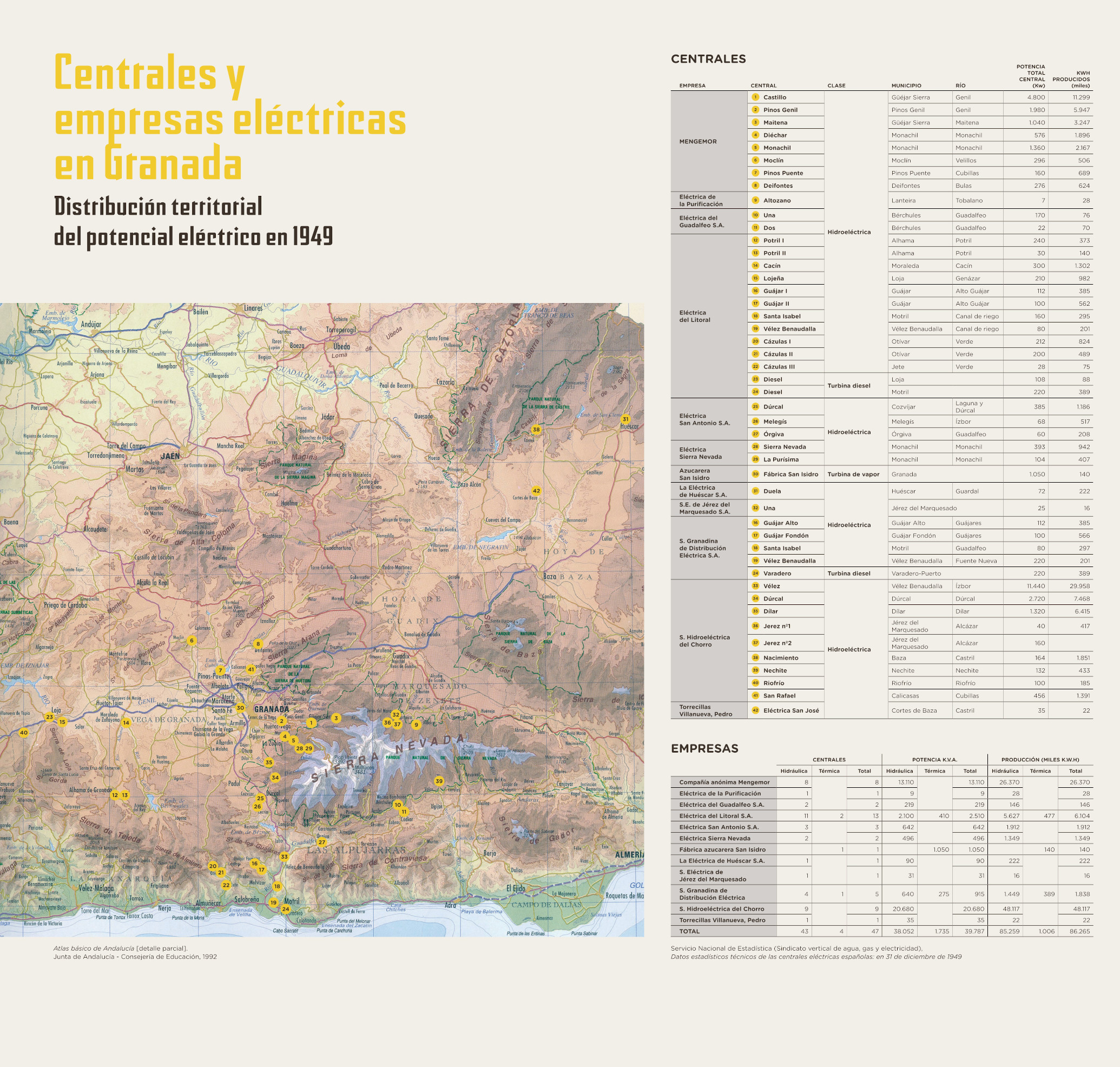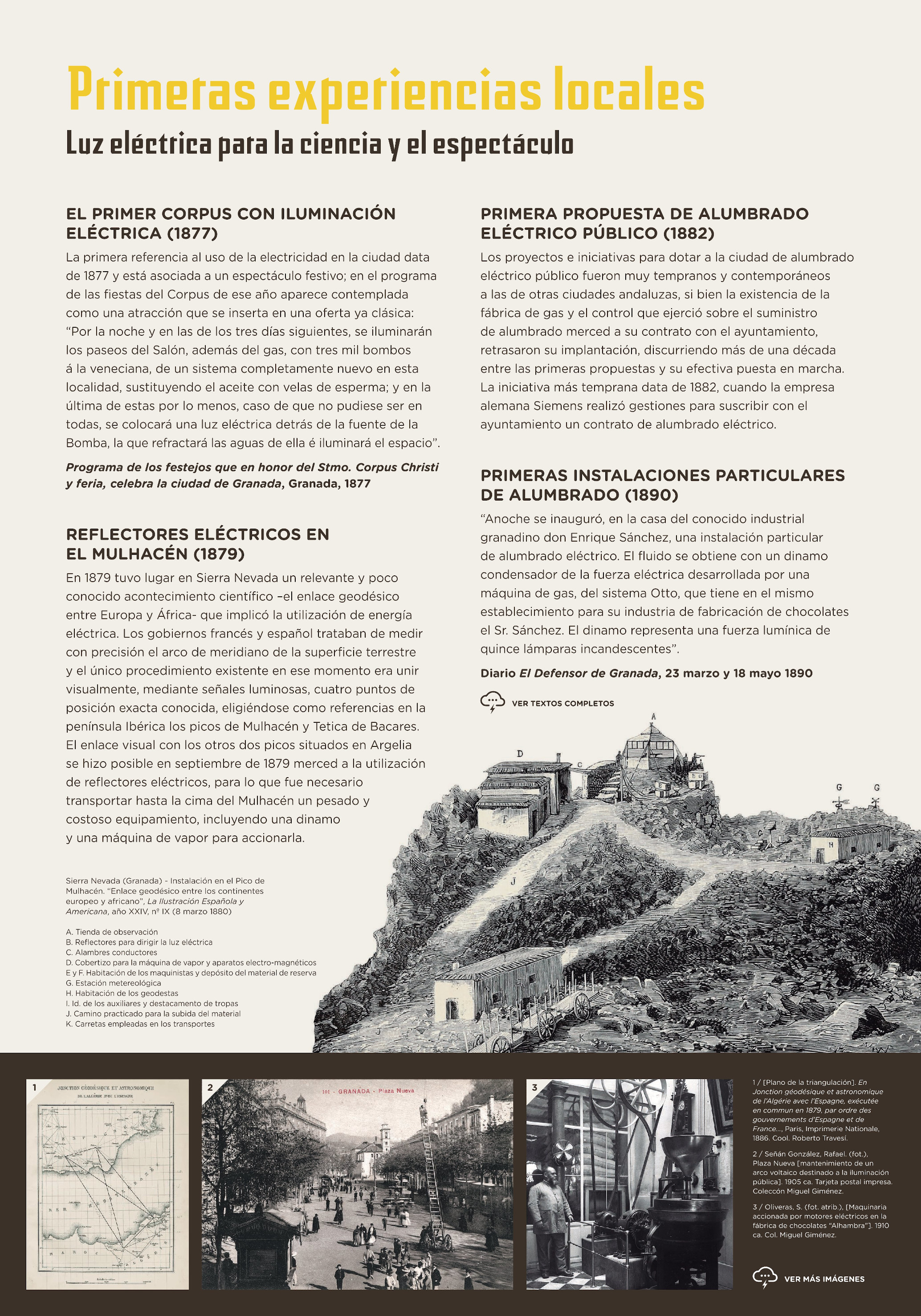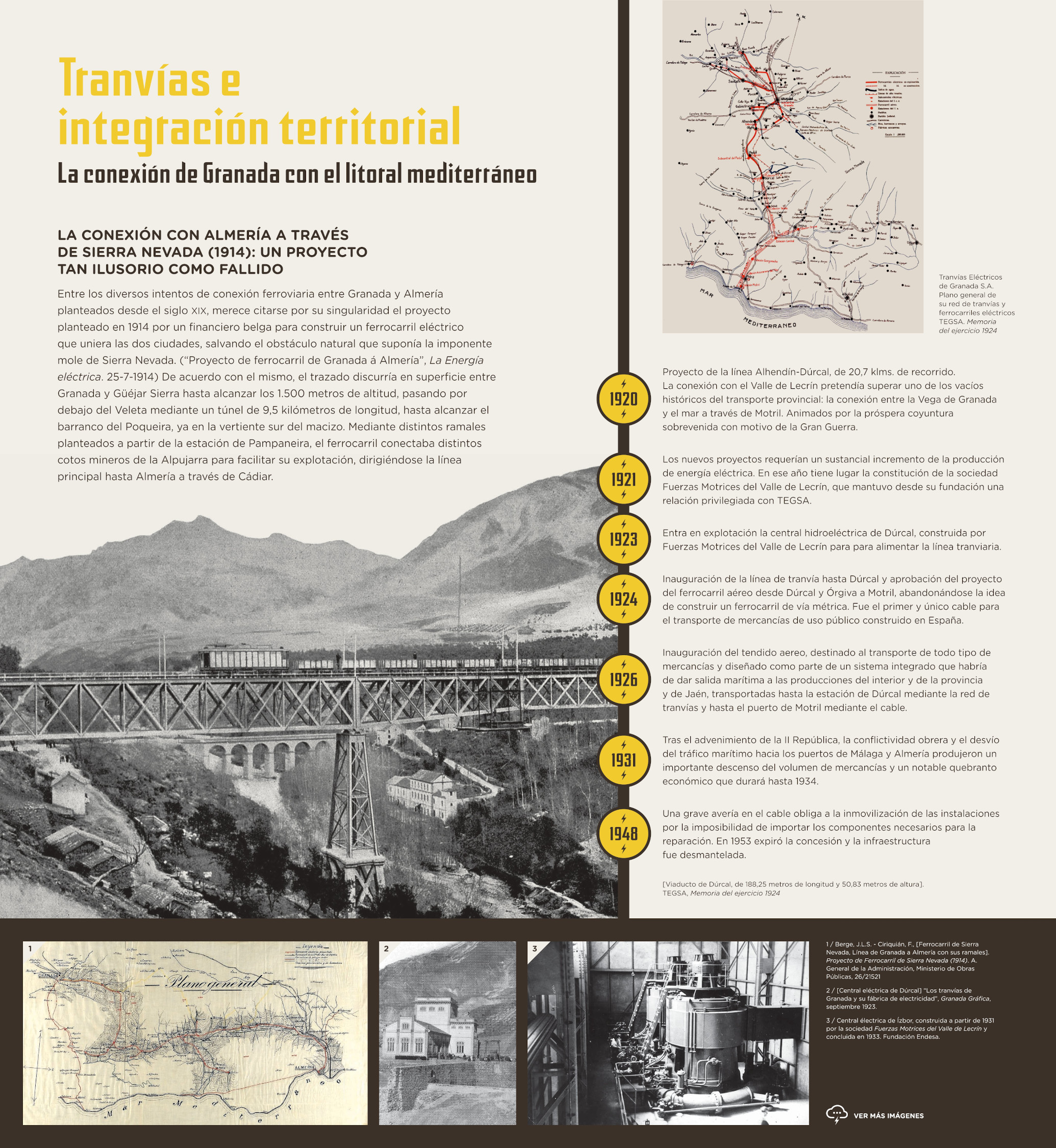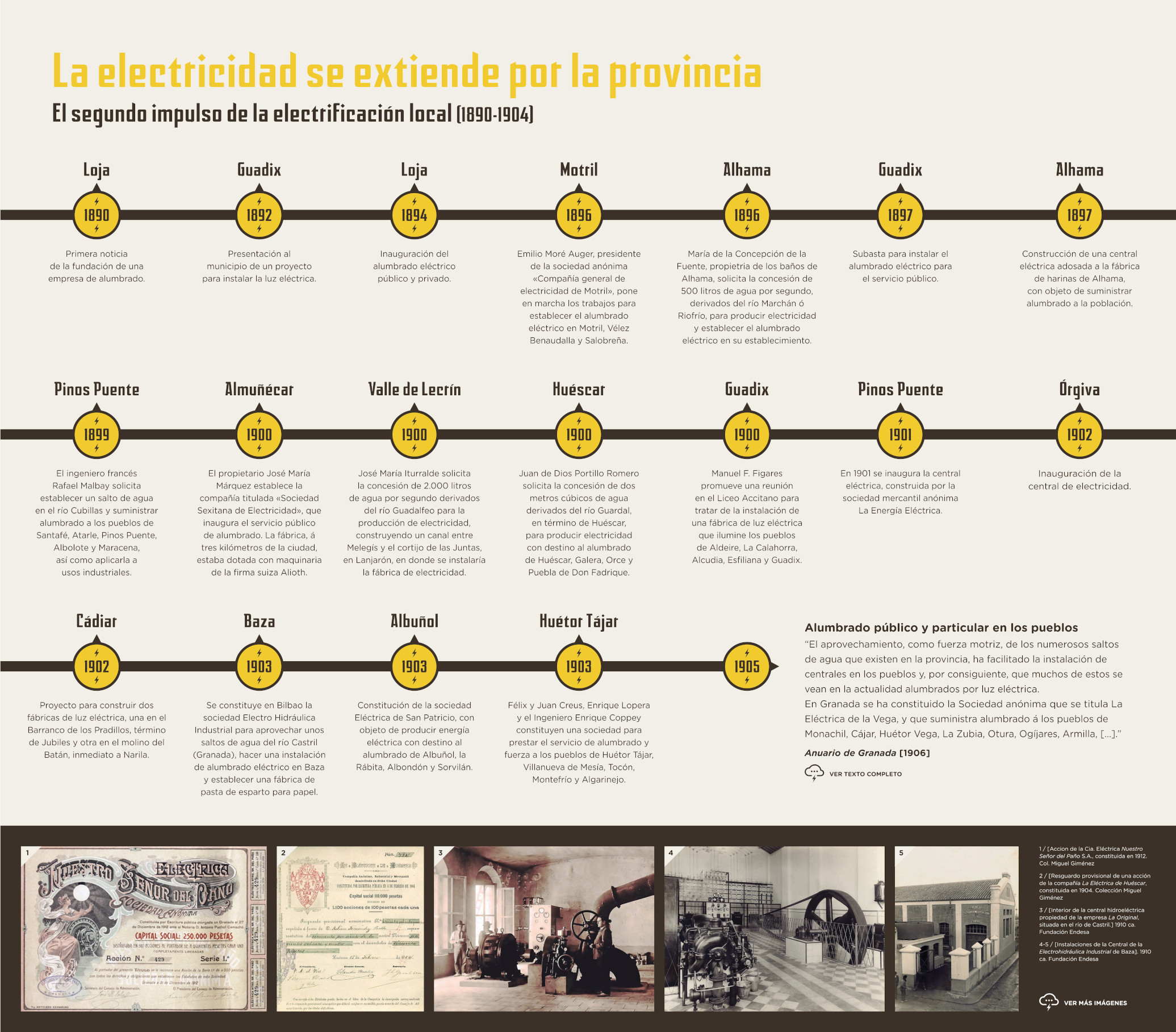Los cambios que acompañaron a la entronización de la nueva energía en la vida cotidiana, lejos de circunscribirse a la ciudad, irradiaron a toda la provincia, donde comenzaron a explorarse nuevos aprovechamientos en torno a Sierra Nevada, en tanto que las vegas interiores experimentaron una radical transformación a raíz del ciclo del azúcar de remolacha, poblando el territorio con instalaciones industriales nunca vistas. A su vez, esta nueva movilización de recursos y energía se vería facilitada por el trazado y construcción de caminos carreteros y vías férreas, que hicieron algo más fácil la comunicación entre unas comarcas cuya endiablada orografía las había condenado tradicionalmente al aislamiento.