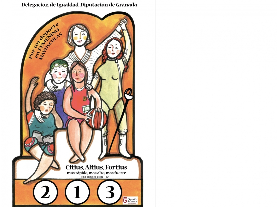 La exposición viene acompañada de una guía didáctica titulada “El deporte, en FEMENINO MAYÚSCULAS”, dirigida a todas aquellas personas que tengan la inquietud de trabajar estos contenidos para tomar consciencia de las desigualdades que generan prácticas discriminatorias entre hombres y mujeres, niños y niñas, en el deporte y la educación física, modificarlas y generar realidades más equitativas y libres. La mayoría las propuestas que en ella se ofrecen se han realizado y experimentado de forma exitosa en centros educativos, con clubes deportivos, asociaciones, con personal técnico deportivo municipal, etc.; en los talleres formativos que la Delegación de Igualdad viene implementando en los municipios de la provincia de Granada en el marco del citado programa “El deporte, laboratorio de igualdad” y en el proyecto “Olimpiadas por la igualdad”. Son propuestas sencillas que coeducan en torno a realidades que asumimos como habituales, pero que siguen normalizando prácticas deportivas no equitativas.