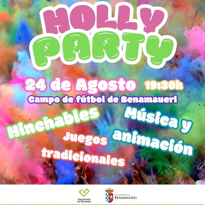 Se va a celebrar la fiesta Holly Party el próximo 24 de agosto en 2024, en el Campo de fútbol de Benamaurel, en horario de 19:30 h.