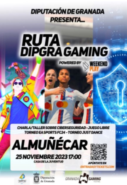 "¡Llega a Almuñecar la Ruta Gaming de Diputación de Granada! No te pierdas una jornada donde hablaremos de ciberseguridad y jugaremos a FC24 y Just Dance. ¿Te harás con la victoria?