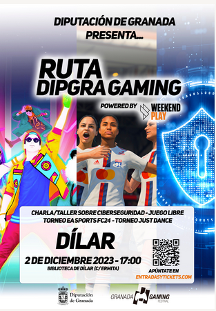 "¡Llega a Dílar la Ruta Gaming de Diputación de Granada! No te pierdas una jornada donde hablaremos de ciberseguridad y jugaremos a FC24 y Just Dance. ¿Te harás con la victoria?