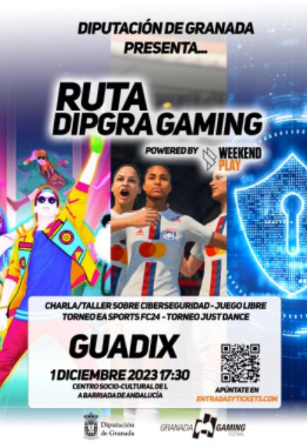 "¡Llega a Guadix la Ruta Gaming de Diputación de Granada! No te pierdas una jornada donde hablaremos de ciberseguridad y jugaremos a FC24 y Just Dance. ¿Te harás con la victoria?