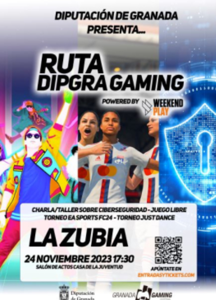 "¡Llega a La Zubia la Ruta Gaming de Diputación de Granada! No te pierdas una jornada donde hablaremos de ciberseguridad y jugaremos a FC24 y Just Dance. ¿Te harás con la victoria?