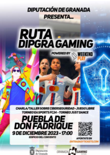 "¡Llega a Puebla de don Fadrique la Ruta Gaming de Diputación de Granada! No te pierdas una jornada donde hablaremos de ciberseguridad y jugaremos a FC24 y Just Dance. ¿Te harás con la victoria?