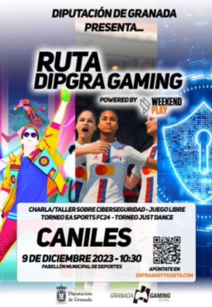 "¡Llega a Caniles la Ruta Gaming de Diputación de Granada! No te pierdas una jornada donde hablaremos de ciberseguridad y jugaremos a FC24 y Just Dance. ¿Te harás con la victoria?